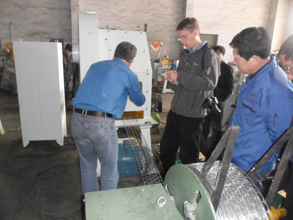 國外客商來到阜新匯新機械有限公司了解多功能臥式聯(lián)沖床。